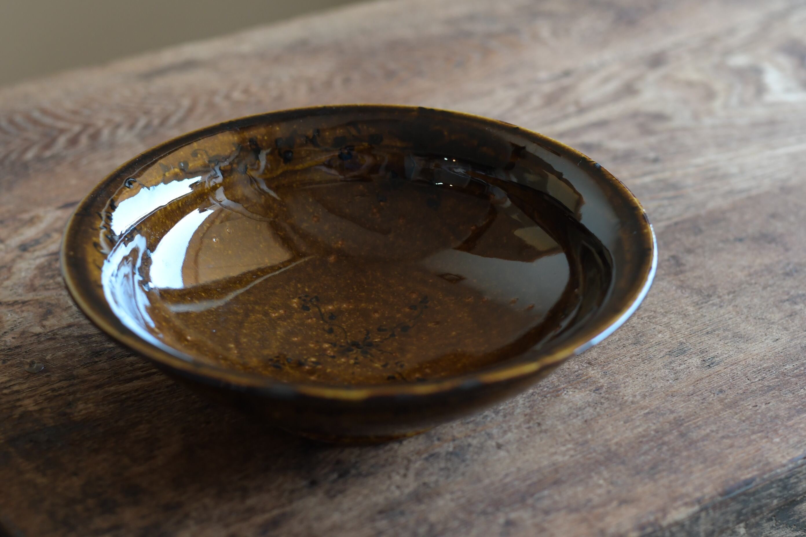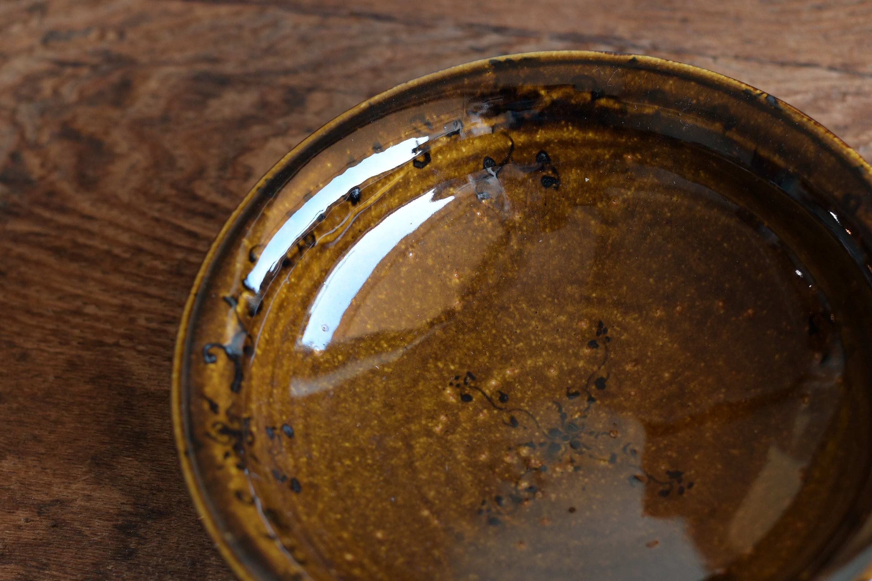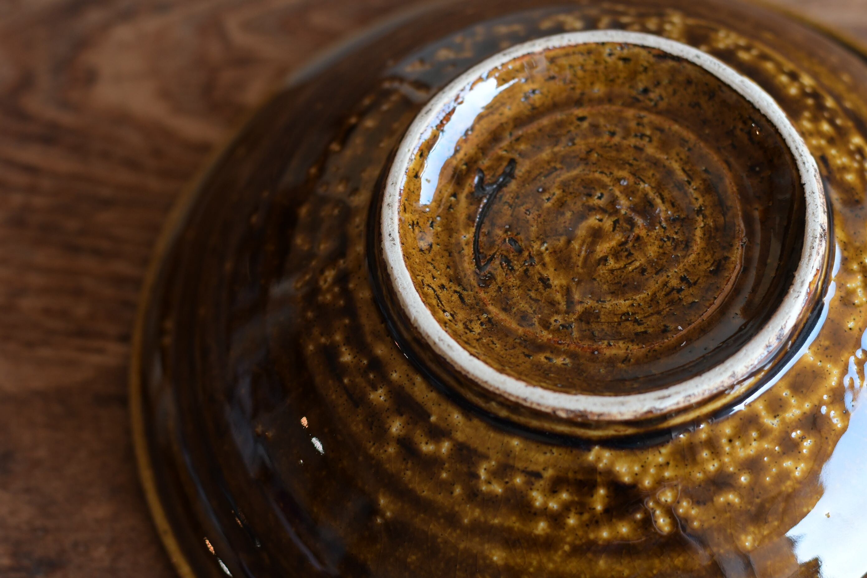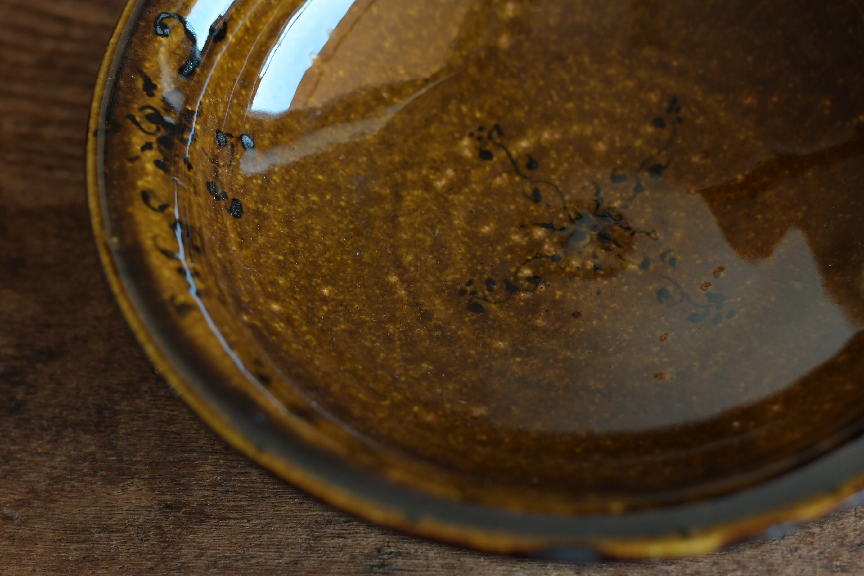 明るく発色した飴釉がゴールドのような色味も感じさせる盛鉢。