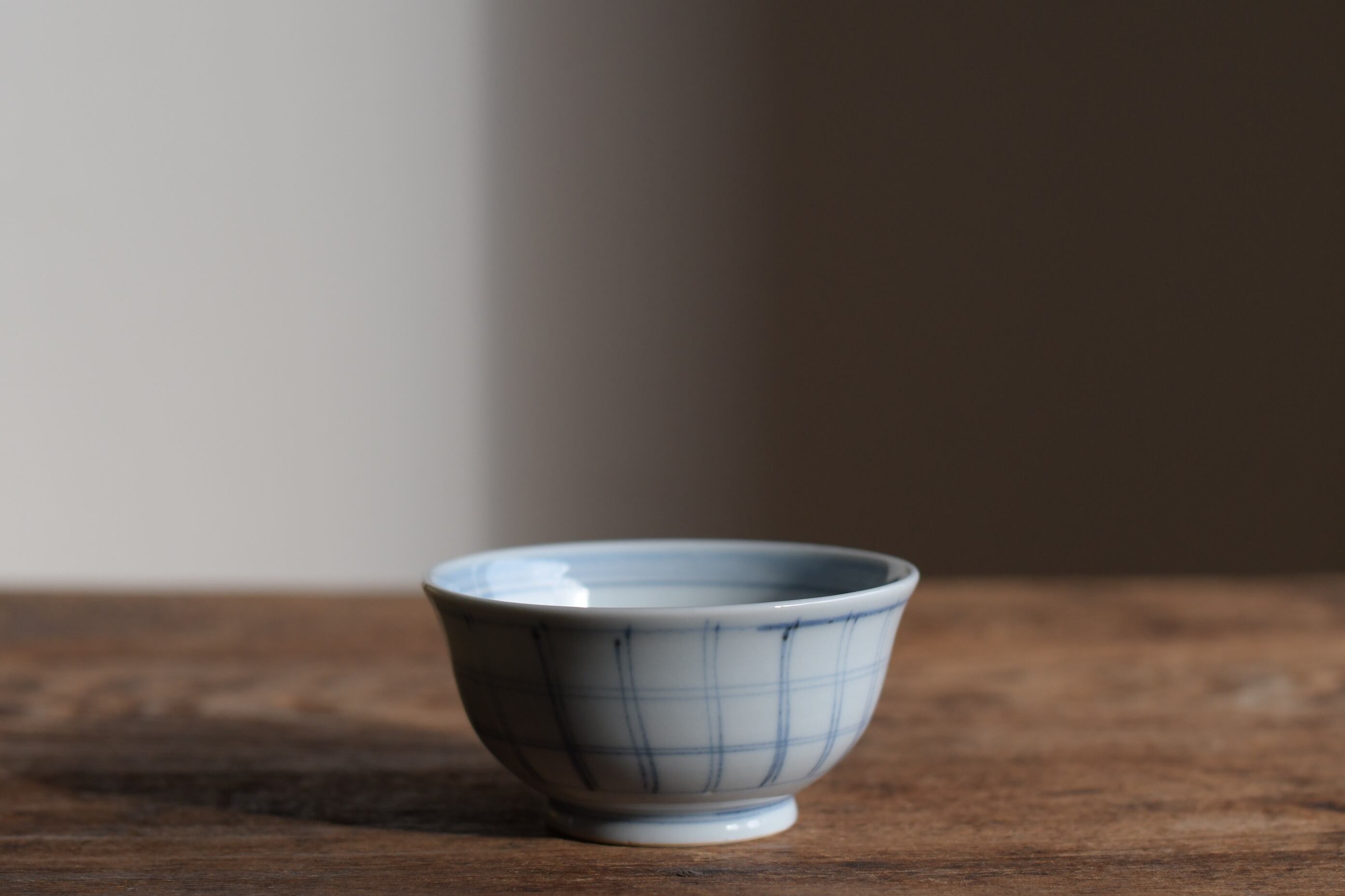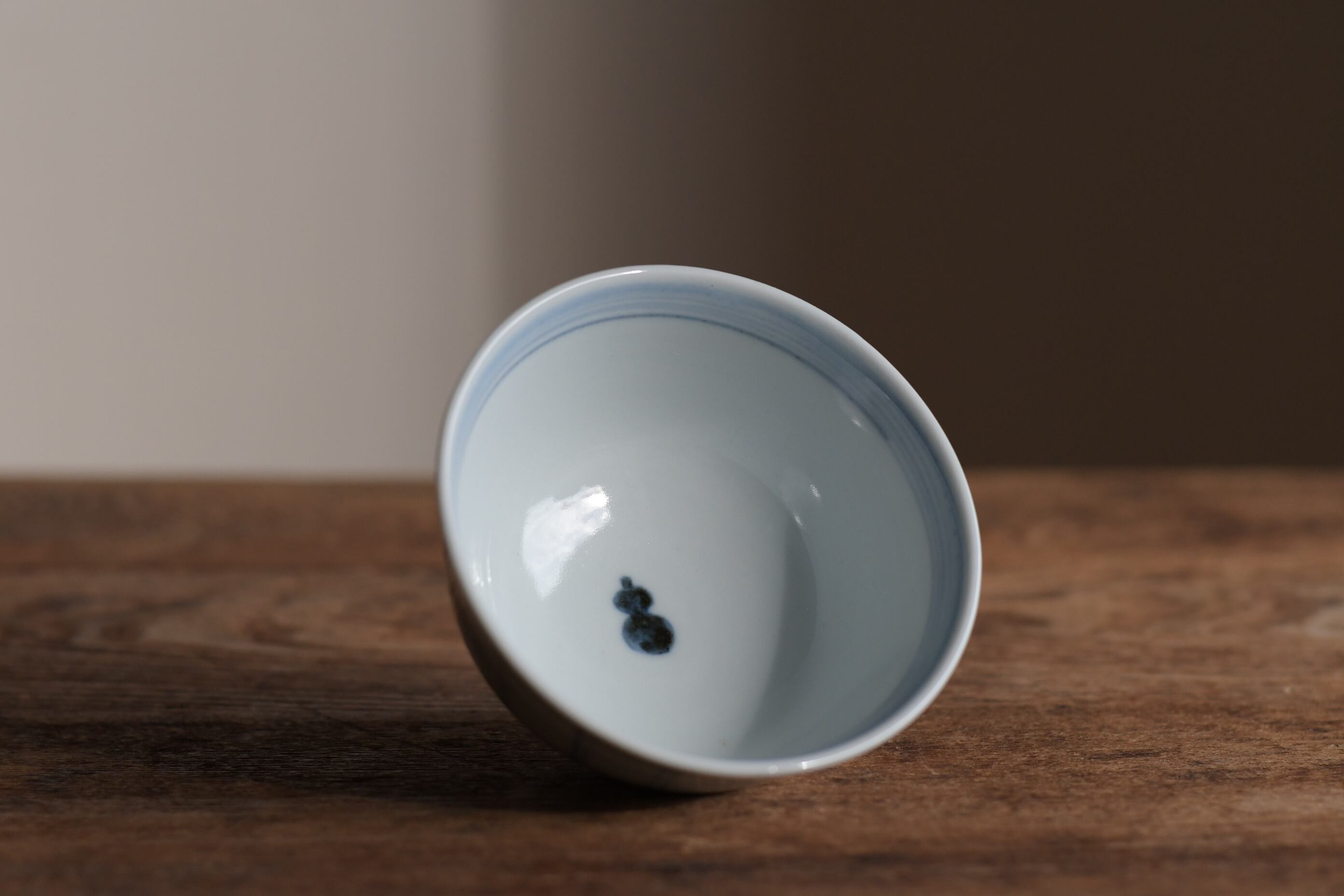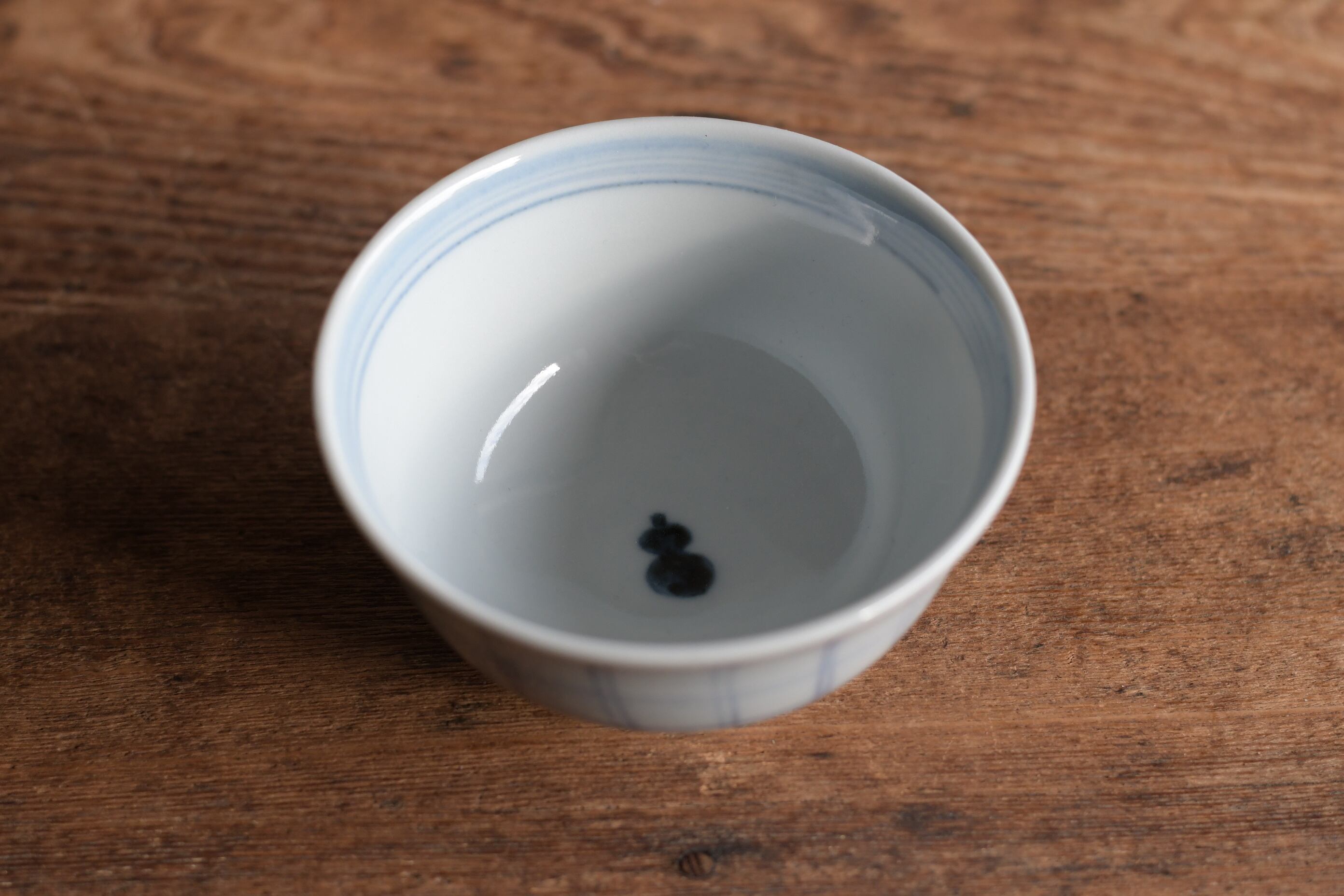 外側はやわらかな筆致の格子文、見込みに瓢箪文が入った飯碗。