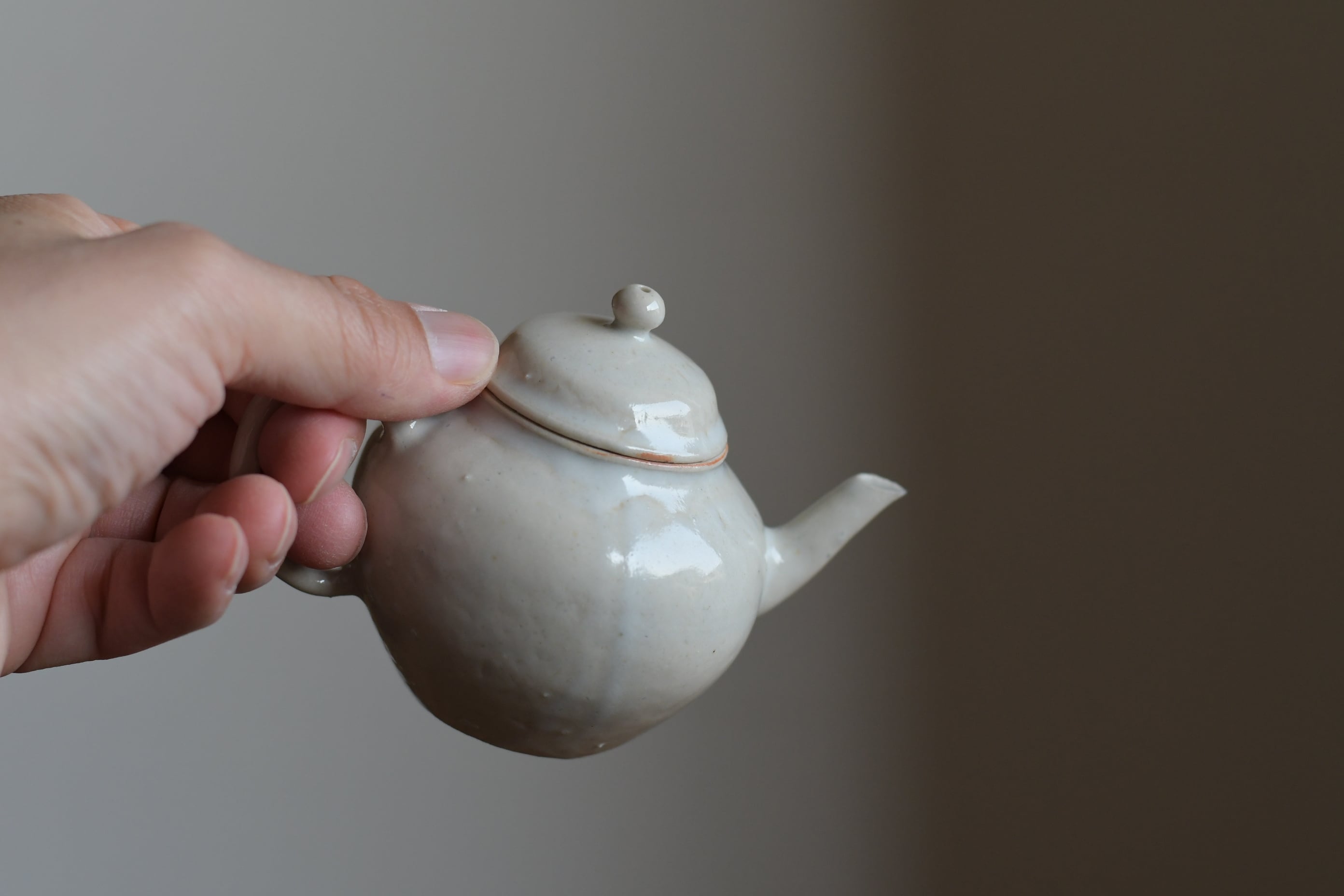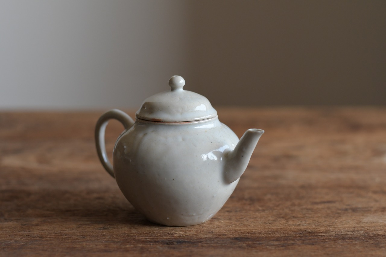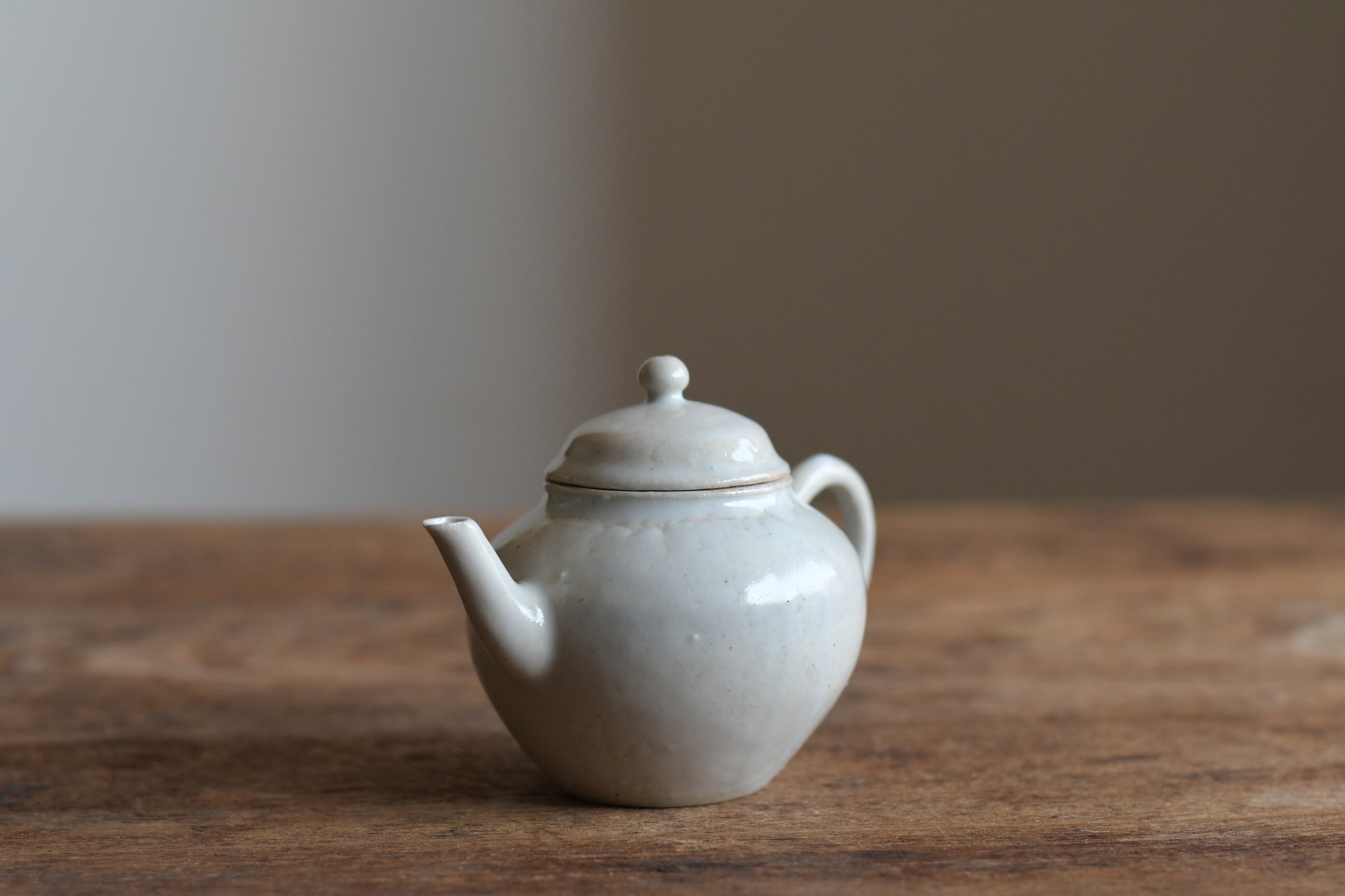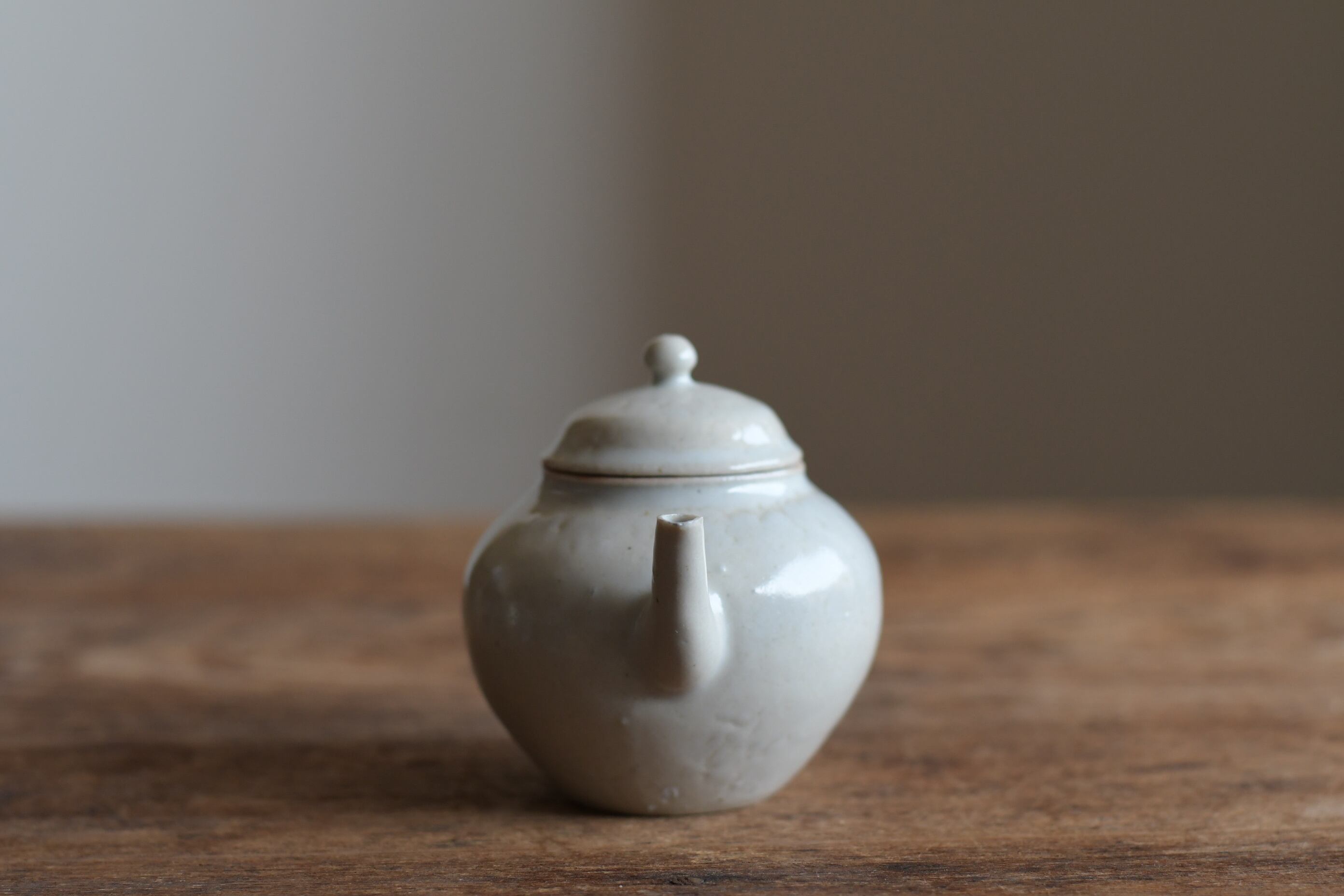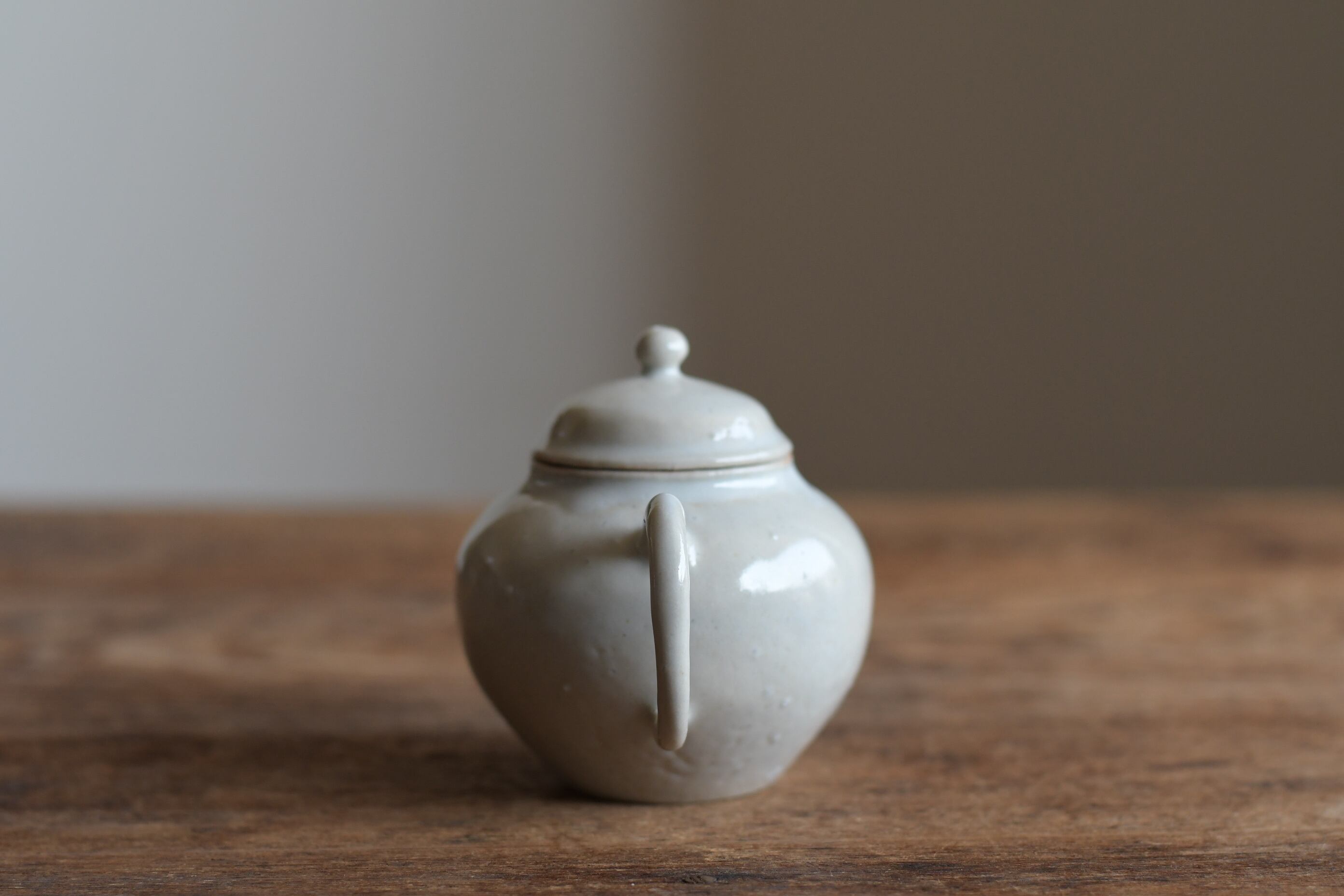 とろりとした艶があり、程よく雑味を含んだ味わい深い質感の白磁の茶壷。