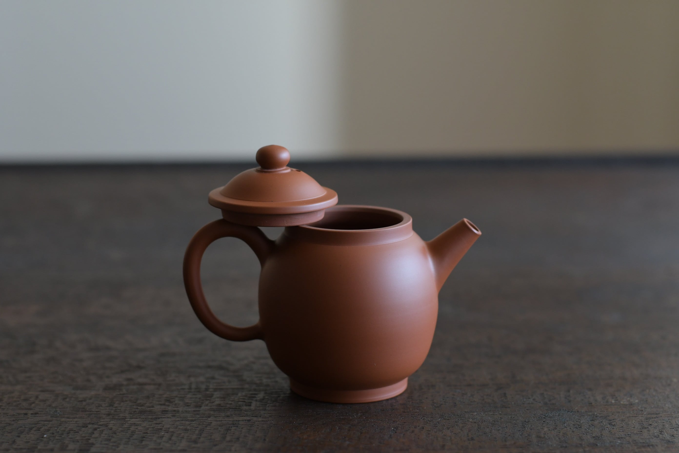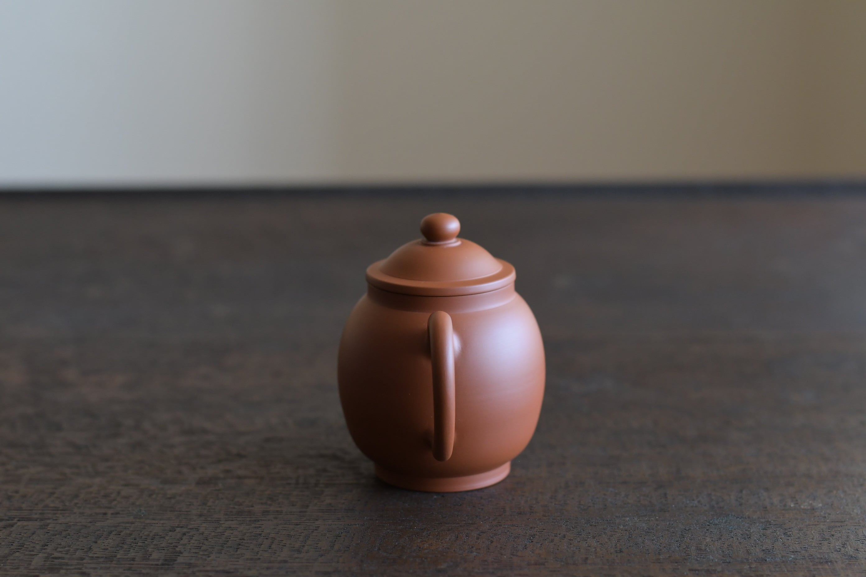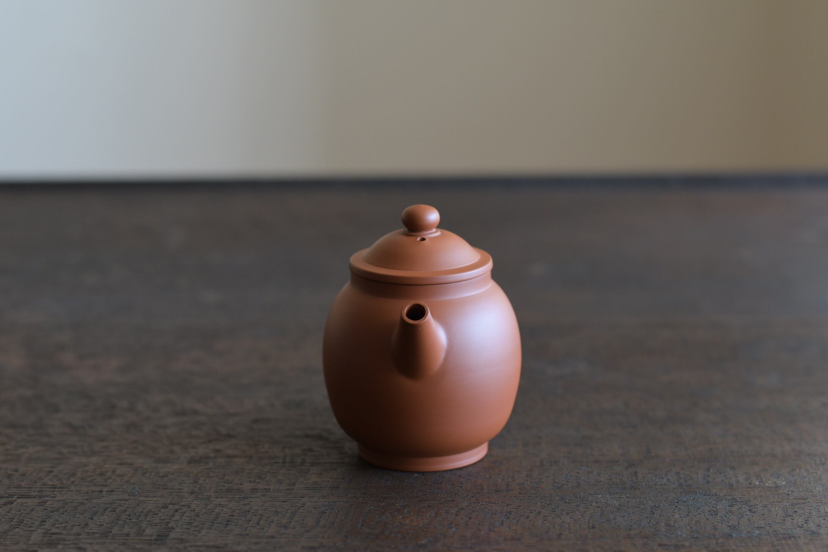 少しだけ背の高い具輪珠形の朱泥茶銚。